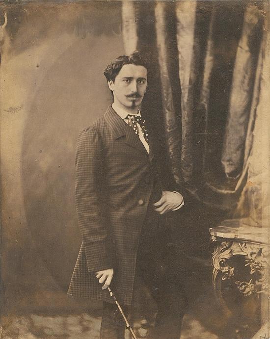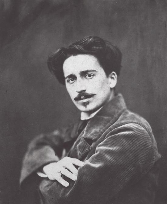 « […] un bonhomme brun, les cheveux rebroussés et un peu crépus, de petites moustaches noires pincées, un foulard de soie blanche au cou ; une tête où il y a du mignon d’Henri III et de l’Espagnol des Flandres ; une parole vive, ardente, précipitée, où l’accent flamand a mis une espèce de rra vibrant. »